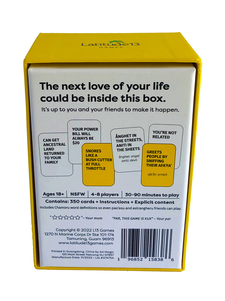 - Includes Chamoru word translations so your pao'asu relatives can play